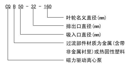 CQB磁力驅動離心泵(簡稱磁力泵),通常由電動機,磁力偶合器和耐腐蝕離心泵組成。其主要特點是利用磁力偶合器傳遞動力,完全無泄漏,當電動機帶動磁力偶合器的外磁鋼旋轉時,磁力線穿過問隙和隔離套,作用于內磁鋼上,使泵轉子與電動機同步旋轉,無機械接觸地傳遞扭矩。在泵軸的動力輸入端,由于液體被封閉在靜止的隔離套內,沒有動密封因而完全無泄漏。CQB系列磁力泵是磁力泵全國聯合設計組開發的新型完全無泄漏耐腐蝕泵,其技術經濟指標與國外同類產品八十年代末的水平相當。CQB系列磁力泵型式及基本參數符合JB/T 7742—1995《小型磁力驅動離心泵型式與基本參數》標準和《小型磁力驅動離心泵三個標準的補充規定》。