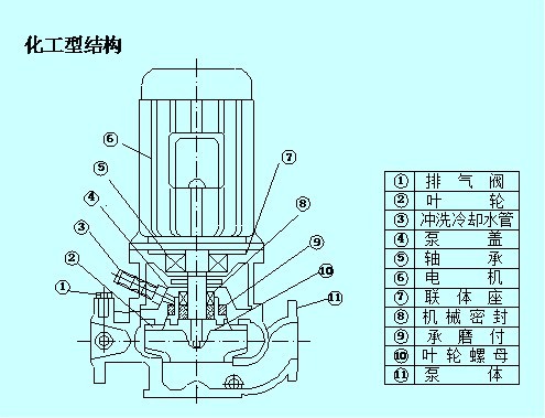 ①     機械密封前置有承磨付,泵蓋上設有密封冷卻,沖洗孔,適用于抽送介質易揮發,或結晶的場合,延長在介質含微小顆粒時機械密封的使用壽命。