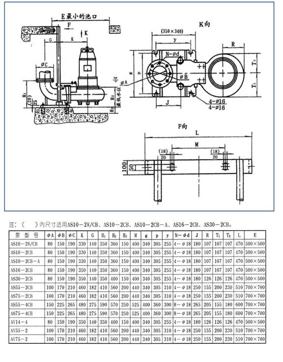 AS、AV型潛水式排污泵安裝尺寸結構圖