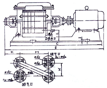 1、2SK系列水環式真空泵關閉進氣管路上的閘閥(用戶自裝,圖上未畫出);