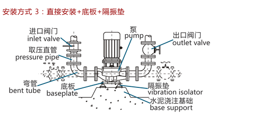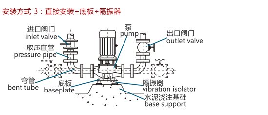 1、泵為立式結構,進出口口徑相同,且位于同一中心線上,可象閥門一樣安裝于管路之中,外形緊湊美觀,占地面積小,建筑投入低,如加上防護罩則可置于戶外使用。
