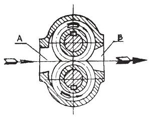 嚙合的齒輪在泵體內旋轉時,輪齒不斷進入和退出跟嚙合。在吸入室,輪齒逐漸退出嚙合狀態,這樣吸入室的容積逐漸增大,壓力降低,液體在液面壓力的作用下進入吸入室,隨齒輪齒間進入排出室。在排出室,輪齒又逐漸進入嚙合狀態,齒輪的齒間逐漸被一齒輪的輪齒占據,排出室的容積減少,排出室內液體壓力升高,于是液體從泵的排出口被排出泵外,齒輪邊續旋轉,上述過程不斷進行,形成連續的輸油過程。